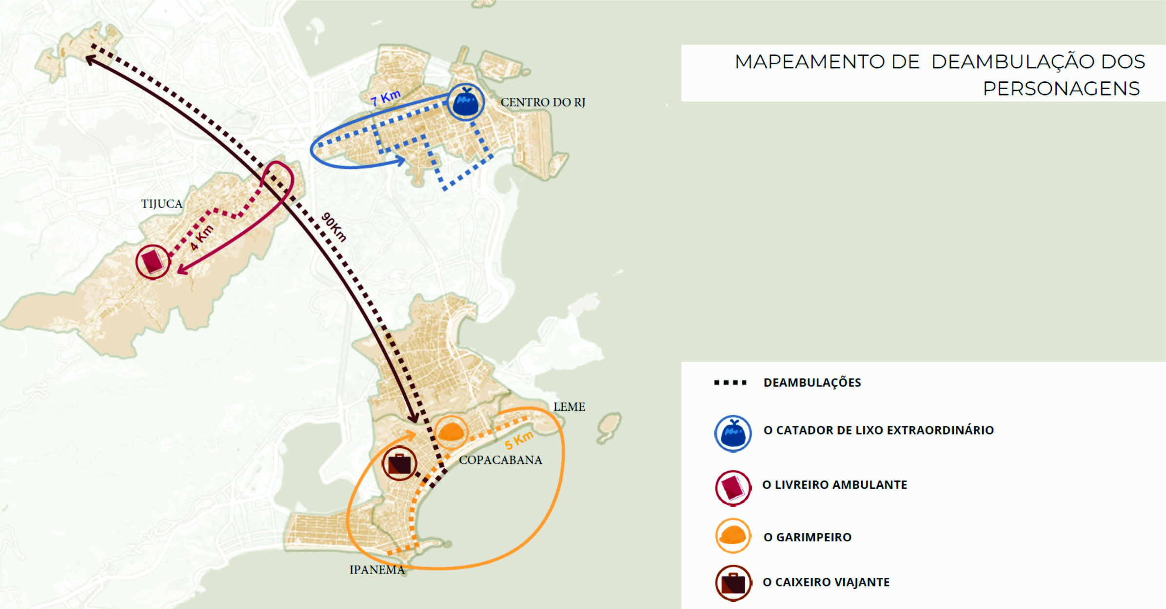 O método, em sua primeira fase, realizado desde o final de 2023, 2024 e o início de 2025, consolida respostas bastante profícuas. Foram sondados, em 2024, os bairros da Gamboa, Centro, Botafogo, Copacabana, Tijuca e Vila Isabel; mais recentemente, em 2025, os bairros do Méier, Bonsucesso, Cachambi e Ramos. Comprovou-se que há uma rotina ou um motivo para o deambular, que se manifesta em atividades tão diferentes quanto as praticadas pelos nossos interlocutores, o que permite elencar algumas categorias de uso do espaço urbano.